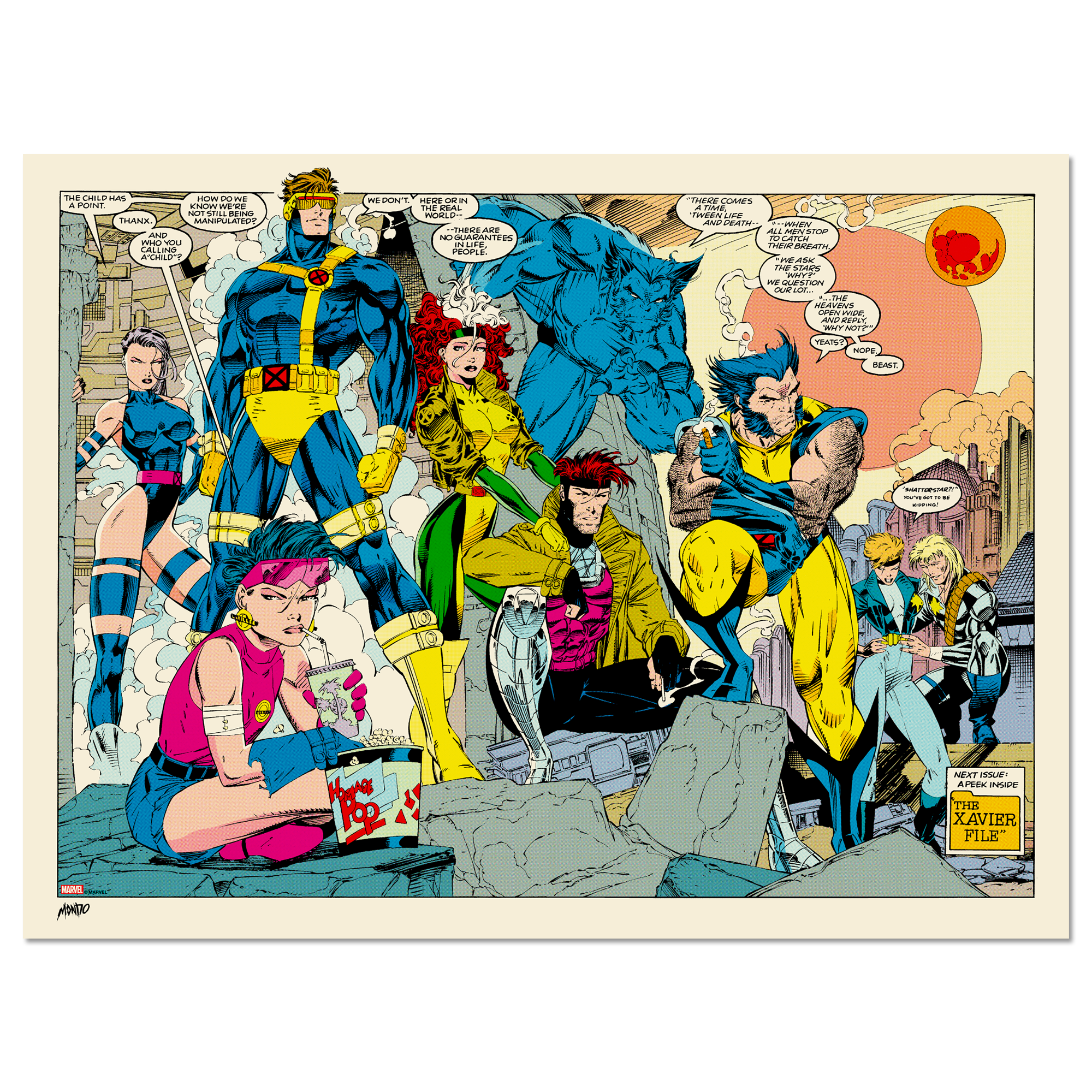 Mondo presents a new screenprinted reproduction from X-MEN #11 (August 1992) with artwork by Jim Lee ... a double-page splash serving as the grand finale to Lee’s iconic 90s X-MEN run.